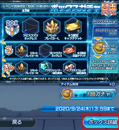 ボックスガチャの詳細については、アプリ内のヘルプをご確認ください。