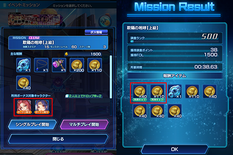 ミッションをクリアすることで、初級~滅級では『黄金のコイン』を、滅級と絶級では『黄金のコイン【呪】』を入手することができます。また、ミッションをクリアすることで、上級~獄級では『復刻コイン』を、滅級と絶級では『復刻コイン【滅】』を入手することができます。