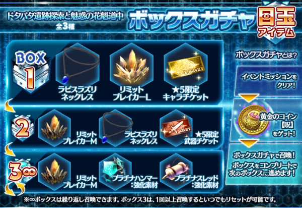 ・ボックスガチャのリセットを行っておりますので、ボックスガチャ1~2を再度利用することが可能です。
