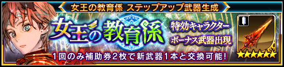 ※「1回武器生成」では、『女王の教育係補助券』の獲得はできません。
