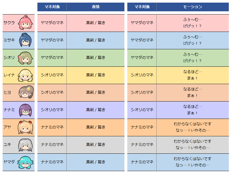 ▼追加後のアナザーカラー衣装一覧(UR/SSRのみ掲載)