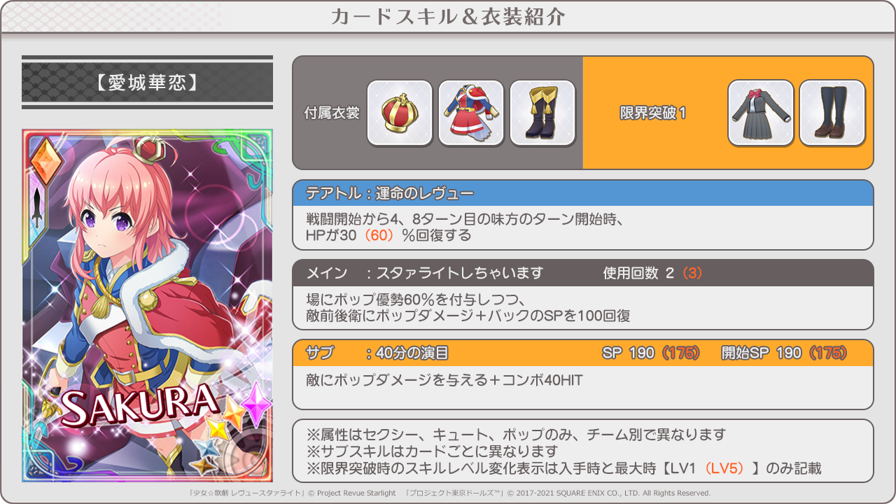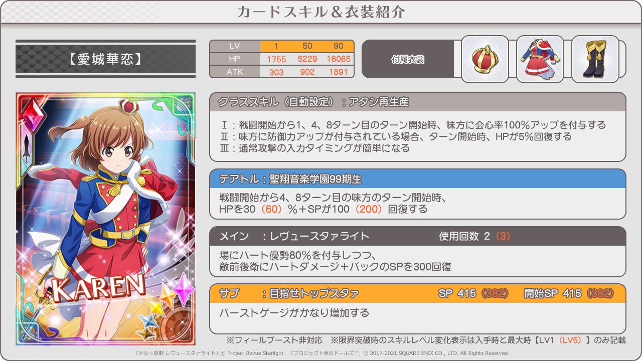 ※愛城華恋(プレイアブル)用のカード属性はハートのみとなります。