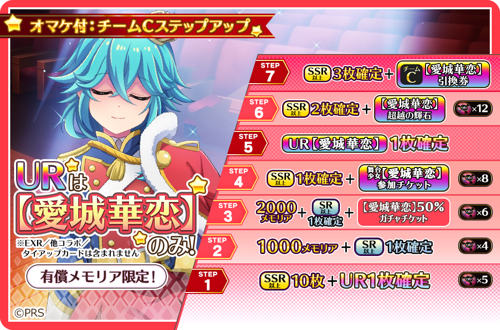 ※STEP6の「参加チケット」はプレイアブル「愛城華恋」のURカードが確定するチケットとなります。