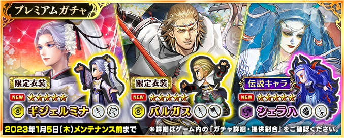 ・プレミアムガチャではイベント攻略に役立つキャラや武器がピックアップ(出現率アップ)対象になります。