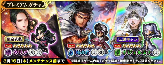 ・プレミアムガチャではイベント攻略に役立つキャラや武器・防具がピックアップ(出現率アップ)対象になります。